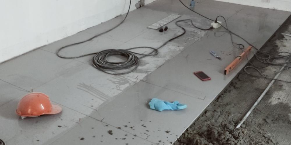 งานกระเบื้อง : งานปูกระเบื้อง ที่ศูนย์ AIS สาขา โลตัส ลาดกระบัง ทรัพย์เจริญการช่าง